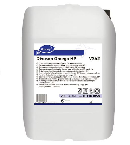 Divosan Omega HP este un detergent-dezinfectant cu spumare redusă, fără clor, destinat utilizării în aplicațiile CIP și de spălare prin pulverizare din fabricile de lactate și industria alimentară procesată.