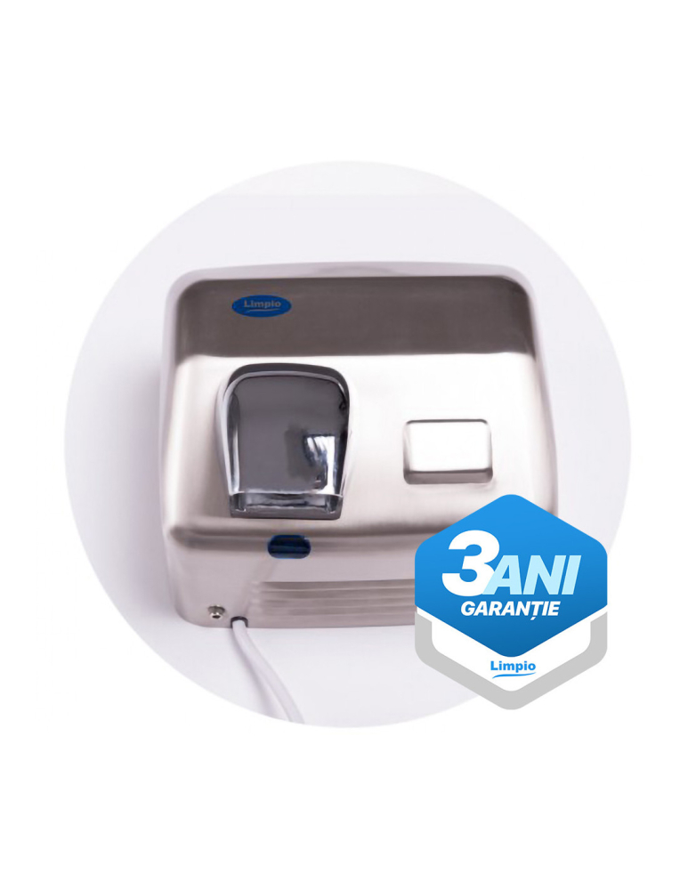 Uscatorul de maini profesional este realizat din otel inoxidabil, echipat cu senzor automat pentru utilizare igienica fara contact.
